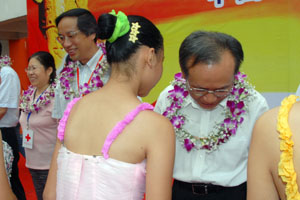 黃淑和一行參加了中國航空工業集團公司援建的綿陽市游仙區新橋鎮中學新教學樓竣工儀式,參觀了中糧集團援建的農舍,到都江堰十局醫院、游仙區柏林中心衛生院檢查巡視,并到東方電氣集團聽取使用受援資金、開展災后恢復重建工作的匯報。