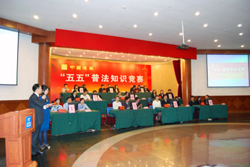 為貫徹落實中宣部、司法部、全國普法辦和國務院國資委關于進一步加強“五五”普法工作的要求,提高廣大職工的法律素養,4月15日,中國建筑工程總公司舉辦了“五五”普法知識競賽活動。國務院國資委于吉局長、王黎曉處長、中國建筑工程總公司副總裁曾肇河、法律事務部總經理秦玉秀等出席了比賽。