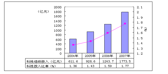 2004-2007年中央企業(yè)科技投入情況