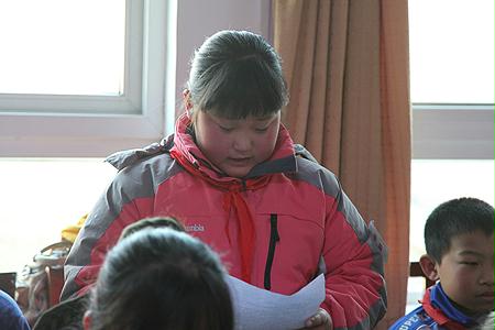 長期患病的受助學(xué)生小雪婷向改革局愛心團(tuán)隊(duì)表達(dá)感激之情