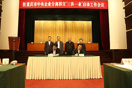 4月10日,國務院國資委與重慶市政府在渝共同組織召開駐渝中央企業分離移交“三供一業”(供水、供電、供氣、物業管理)啟動工作會議,簽訂駐渝中央企業分離移交“三供一業”工作協議。國務院國資委主任、黨委書記張毅,重慶市委副書記、市長黃奇帆出席會議并講話,國務院國資委黨委委員、副主任孟建民,重慶市委常委、常務副市長翁杰明參加會議。