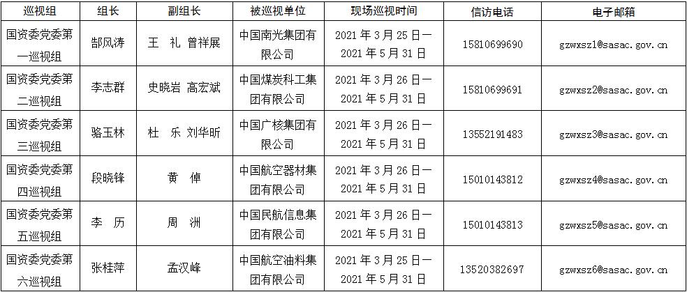 國(guó)資委黨委2021年第一輪巡視進(jìn)駐一覽表