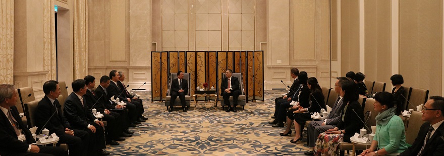 高峰會前,郝鵬同澳門特區行政長官崔世安進行了會談。崔世安表示澳門回歸祖國以來,中央企業積極支持澳門實踐“一國兩制”、澳人治澳、高度自治,在促進澳門經濟快速增長、民生持續改善、社會穩定和諧等方面發揮了重要作用,希望雙方持續深化合作,取得更大成果。郝鵬介紹了中央企業在澳門投資發展情況,表示國務院國資委和中央企業堅定支持澳門貫徹落實“一國兩制”方針,將充分利用澳門中葡平臺深化與葡語國家交流合作,促進澳門經濟適度多元發展,為澳門長期繁榮穩定作出應有貢獻。