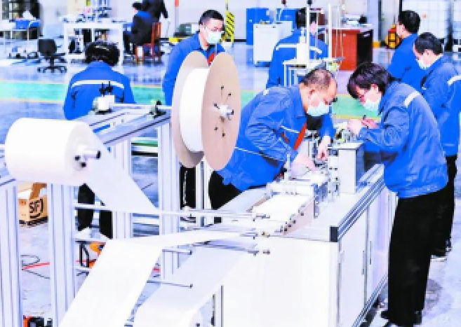 圖為兵器工業(yè)集團(tuán)員工在調(diào)試口罩機(jī)。兵器工業(yè)集團(tuán)/供圖