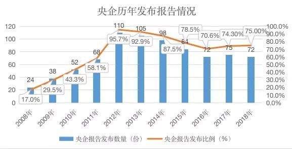1、2018年,中央企業發布72份社會責任報告,發布比例與去年持平
