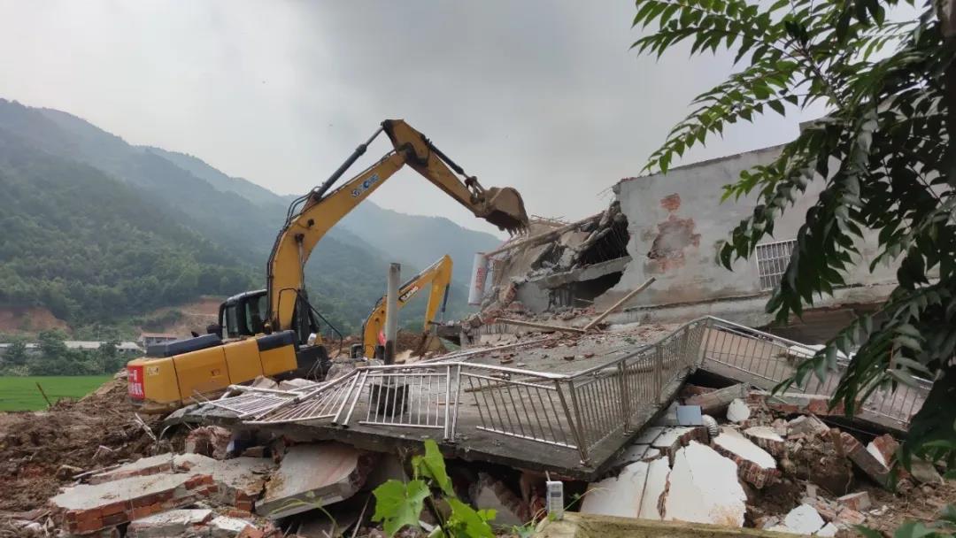 救援隊伍陸續撤離袁山村,現場的危房拆除和消殺工作仍在繼續。黃梅供電公司搶險隊員依舊堅守在事故現場,著手開展電力設施的災后重建,并進行特殊巡視防止發生次生災害。