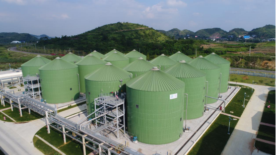 在這里,中節能綠碳(遵義)環保有限公司通過綠色高效的開發手段,每年能夠處理茅臺酒糟10萬噸、高濃度釀酒廢水5萬噸,年產生物天然氣1100萬Nm3。這些天然氣不僅能通過管道輸送給廠區內燃氣鍋爐使用,生產的高溫飽和蒸汽供給酒廠釀酒,還能通過燃氣管道直接進入當地天然氣公司,供居民及工廠使用,有效地緩解了當地燃氣供應緊張的局面。
