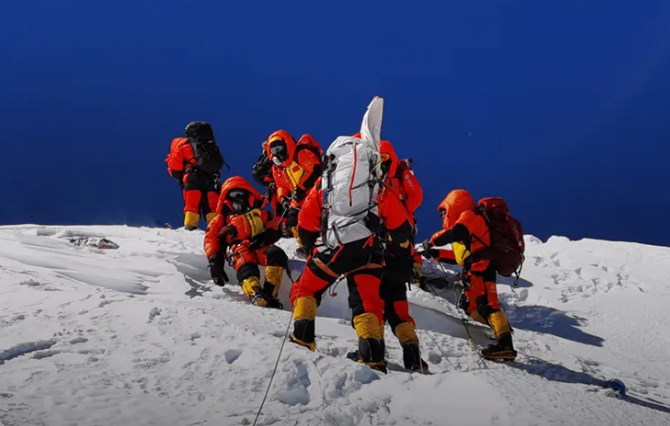 5月27日,珠峰測量登山隊在登山途中由中星6A通信衛(wèi)星提供通信保障,中途實況畫面通過衛(wèi)星傳回。風云四號等氣象衛(wèi)星提供氣象監(jiān)測支持。航天科技、航天科工、兵器工業(yè)集團、中國電科等中央企業(yè),用北斗系統(tǒng)助登山隊硬核測繪!
