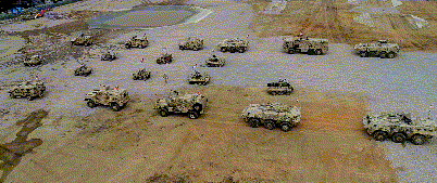 東風猛士軍車兩輛高機動軍用越野車、一輛6人輕型防護突擊車、一輛10人輕型防護突擊車及輕型越野車掛車,為觀眾呈現5分30秒精彩演示。