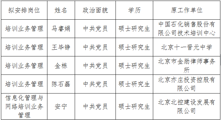 國務院國資委干部教育培訓中心2020年社會公開招聘擬聘人選公示