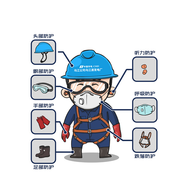 從頭到腳,有頭部防護、跌落防護、眼睛防護、手部防護、全身防護、聽力防護、呼吸防護、足部防護等。