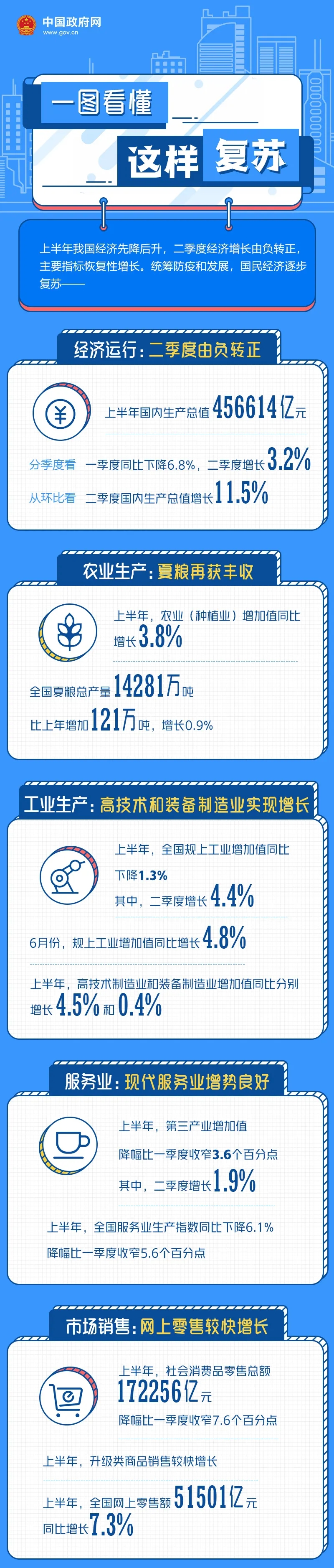 一圖看懂:上半年國民經(jīng)濟(jì)逐步復(fù)蘇