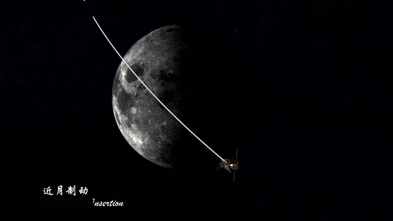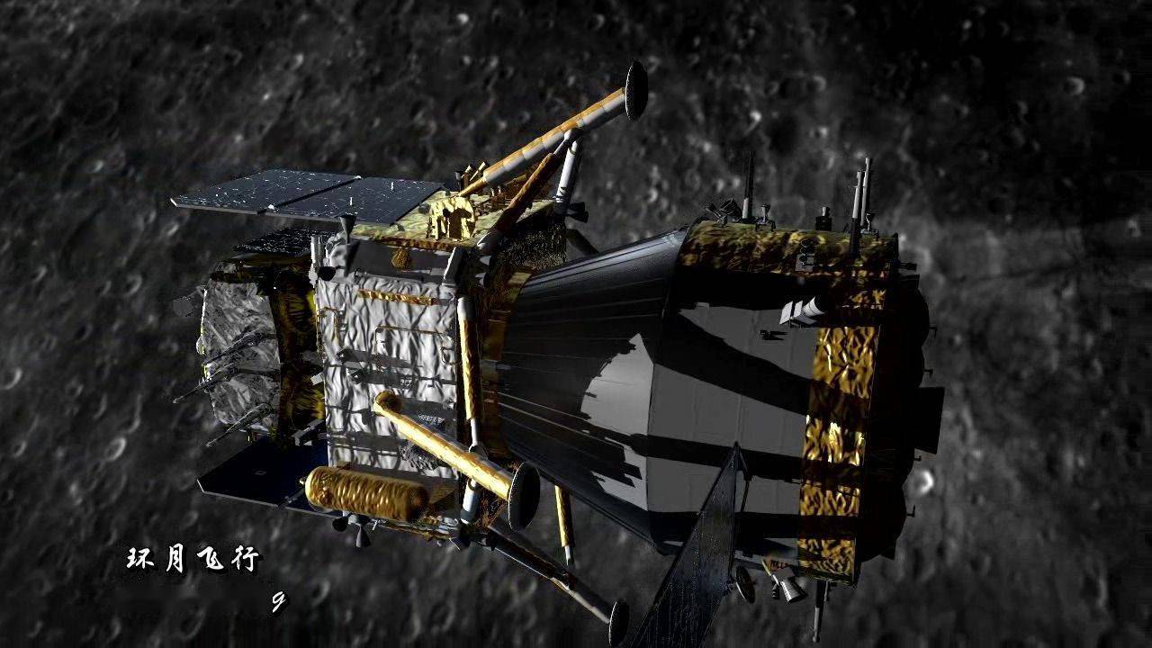 三是近月制動階段。嫦娥五號繼續在目標環月飛行軌道正常行進,并在近月點進行2次減速制動,以合適的運動速度進入到環月圓軌道,最終進入的軌道距離月面200km左右,近月制動時段長達1天。