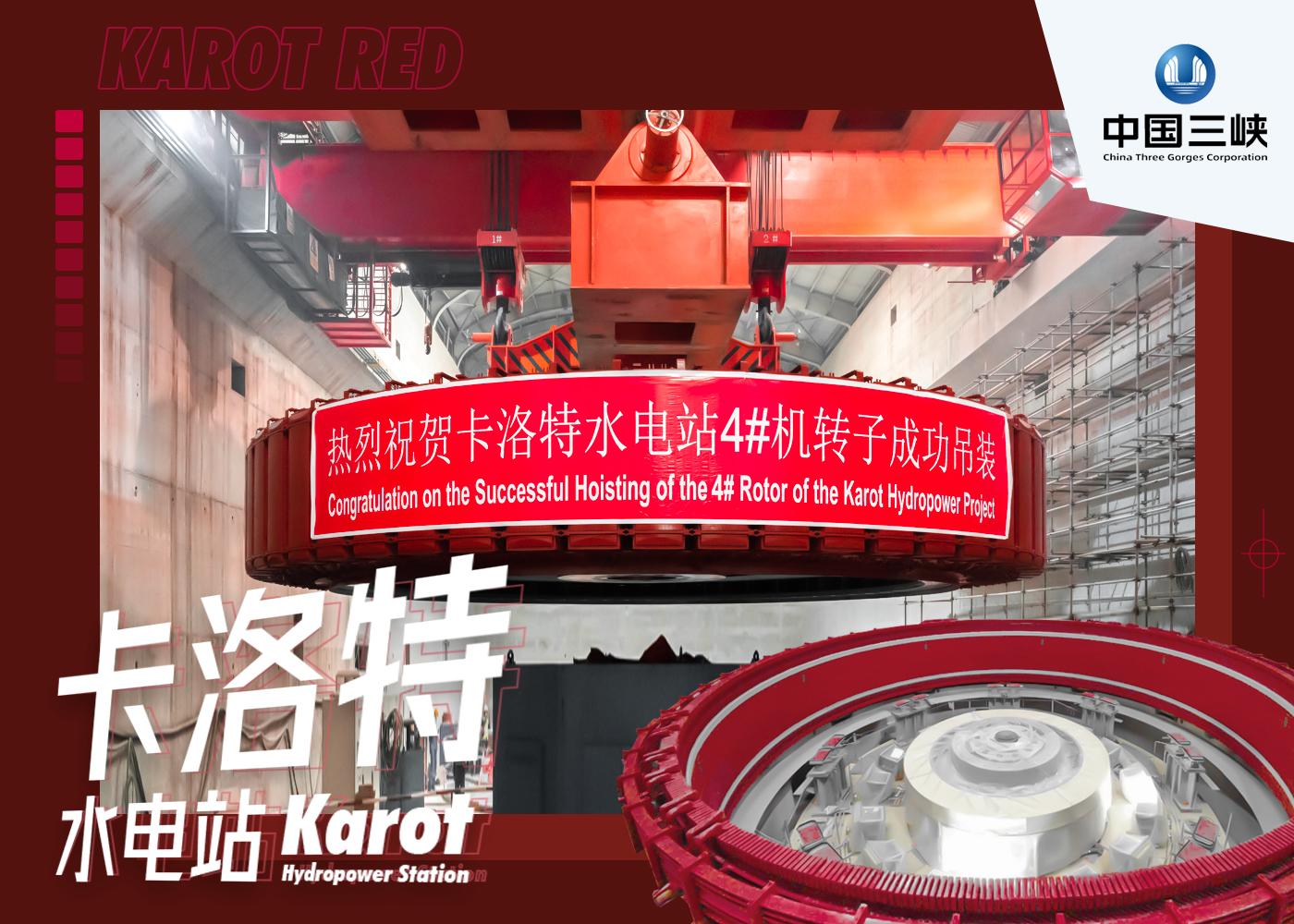 炎炎夏日里,不停轉動的紅色轉子飽含工程建設者的工作熱情。卡洛特水電站于2015年4月20日正式破土動工,助力解決當地電力短缺難題。大壩挺拔的身姿在緊張有序的建設中逐漸清晰。2021年11月20日,卡洛特水電站下閘蓄水,為全部機組投產發電奠定了堅實基礎。2022年3月29日4臺機組轉子吊裝成功,向如期實現全面投產發電目標更進一步。