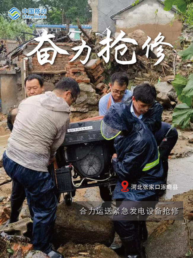 近日,京津冀出現(xiàn)極端降雨過程,部分基站停電、斷站、光纜中斷,居民的通信網(wǎng)絡(luò)受到嚴(yán)重影響。中國移動第一時間有序開展通信保障、物資調(diào)度等系列搶險保通工作,一線工作人員冒雨前行,全力搶修因暴雨中斷的線路,確保通信暢通。