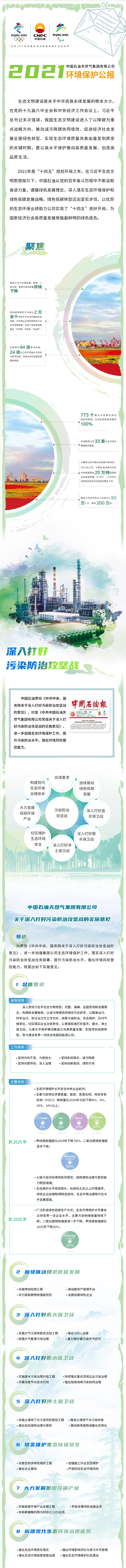 6月1日,中國石油發布《2021年環境保護公報》,從深入打好污染防治攻堅戰、夯實環保管理、關注“雙碳”目標、助力綠色冬奧等六個方面,全方位展示了中國石油在環境保護領域的成績和綠色發展足跡。