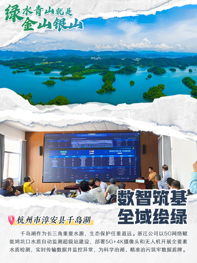 今年是“兩山”理念提出20周年。中國移動浙江公司始終踐行“綠水青山就是金山銀山”理念,在生態(tài)布局、生態(tài)轉(zhuǎn)化、生態(tài)富民、生態(tài)自覺等方面持續(xù)發(fā)力,以助力全面深化美麗浙江建設為己任,努力讓天更藍、水更清、地更潔、山更綠、民更富,交出一份“綠色答卷”。