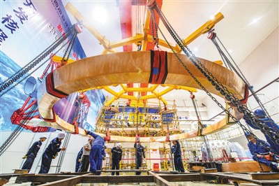 中國環(huán)流器二號(hào)M裝置PF7B線圈起吊。范 晉攝