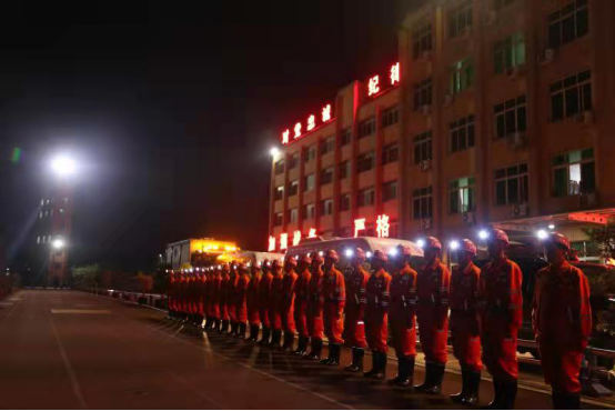 “生命至上、人民至上”,面對突發災情,面對群眾安危,按照四川省應急管理廳、四川省抗震救災指揮部統一安排,國家礦山應急救援芙蓉隊(川煤華榮能源公司宜賓救護消防大隊)、川煤華榮能源公司華鎣山礦山救護大隊分別于9月16日5:50、6:34迅速集結,相繼出發,緊急馳援瀘縣。