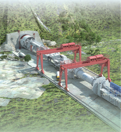 斜井硬巖掘進機,具備自主爬坡能力,安全性好、掘進效率高,主要用于抽水蓄能斜井隧洞施工。
