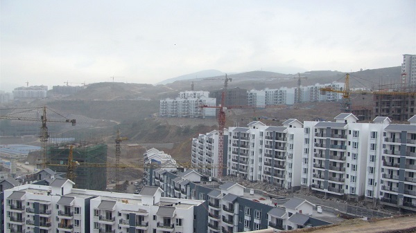 漢源縣城的重建與新縣城的施工直接關系到下游不遠處瀑布溝水電站能否順利實現下閘蓄水。抗震救災加上確保發電兩個重任,成為援建漢源的葛洲壩人肩上義無反顧的責任。為了幫助漢源縣城人民早日搬入縣城新址,葛洲壩集團組織10多支施工隊伍、1000余臺施工機械在漢源縣城新址處拉開了一場援建施工大會戰,漫山遍野劃分為十多個工區。