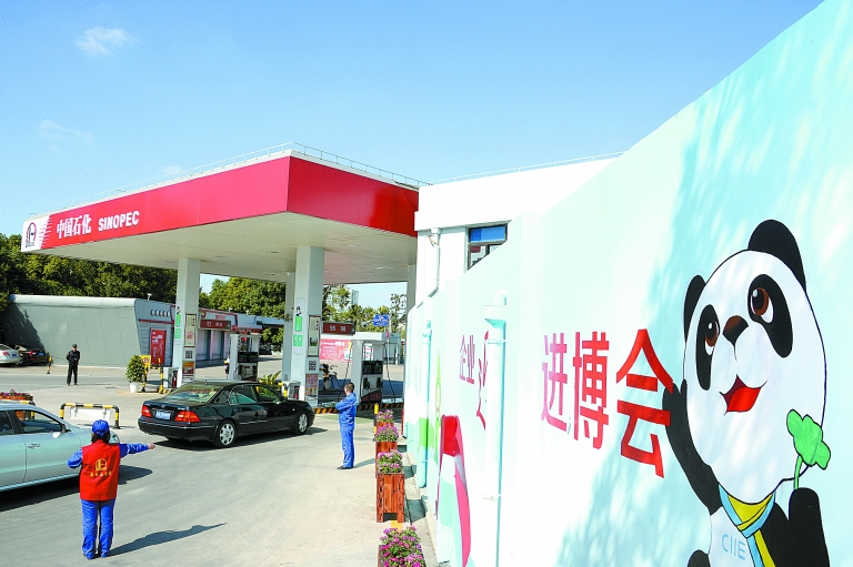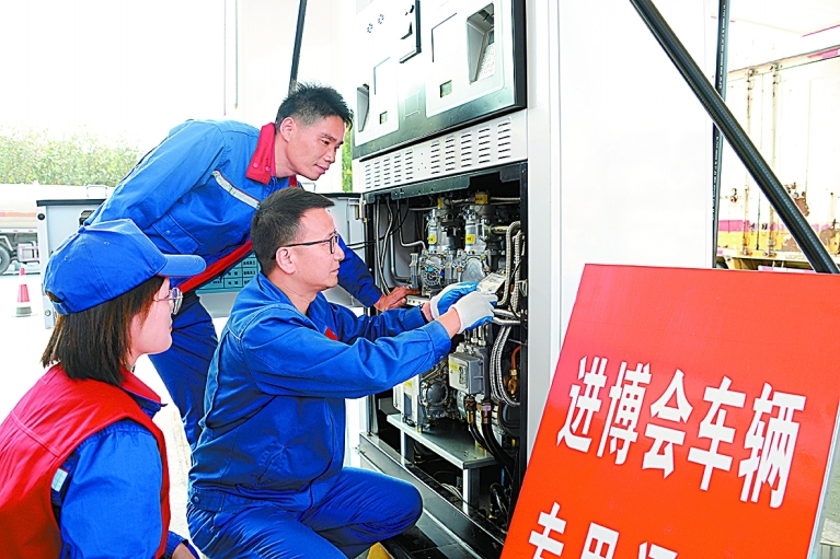 廣虹加油站員工為服務(wù)進博會車輛加油