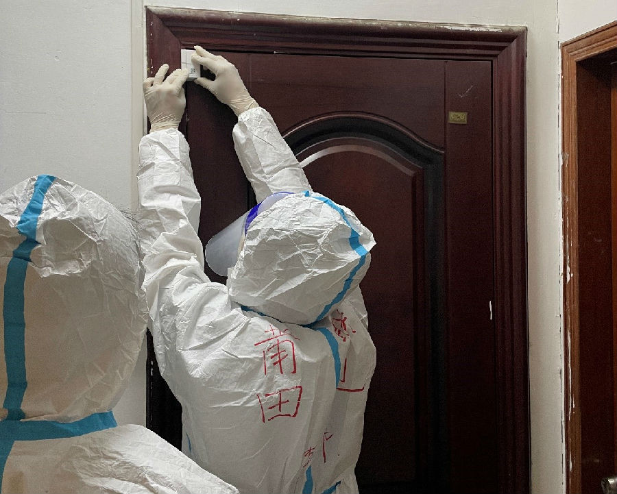 是的,不光是時間緊、任務重,更是風險大、難度高。19日上午,身穿厚重防護服的李一偉、張振彬,前往仙游縣某中風險小區,挨家挨戶為隔離人員安裝。