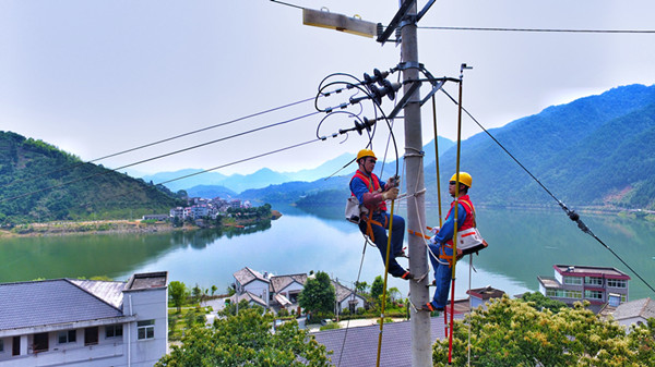配電網(wǎng)領(lǐng)域的改造升級(jí)還延伸到了我國(guó)廣大的農(nóng)村地區(qū)。圖為浙江杭州供電公司員工對(duì)千島湖附近供電線路進(jìn)行改造。