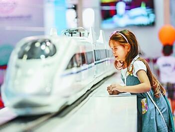 一個女孩在第82屆薩洛尼卡國際博覽會中國館參觀中國高鐵列車模型。新華社發
