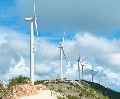 在黑山共和國(guó)南部港口城市巴爾的莫祖拉山山脊上,23臺(tái)中國(guó)制造的2.0兆瓦低風(fēng)速智能風(fēng)機(jī)迎風(fēng)飛轉(zhuǎn),映襯著秀美的海岸線,蔚為壯觀。