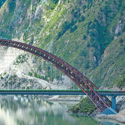 拉林鐵路位于青藏高原岡底斯山與喜馬拉雅山之間的谷地,90%以上的線路走行于海拔3000米以上,地形地質條件極其復雜。經過6年多的施工,建設者們在保護好生態環境的基礎上,攻克一系列全國性、世界性罕見難題,創造了高原鐵路建設奇跡。延伸的鐵路、飛馳的列車,串起雪域高原上的“團結線”,促進各民族交往交流交融;鋪就增收致富的“幸福路”,推動產業轉型升級,助力西藏自治區實現高質量發展。