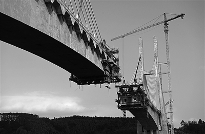 圖為在廣西南寧南深高鐵南玉段六律邕江特大橋建設現場,中鐵十四局集團工人在建設施工中。