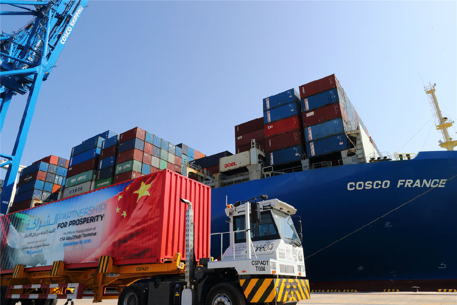 2018年12月10日,中遠海運港口阿布扎比碼頭如約開港,同步啟用中東地區最大的集裝箱貨運站。項目成果在中東地區產生了巨大轟動效應。阿聯酋皇室主要成員在儀式上不止一次地說,中遠海運港口阿布扎比碼頭項目只用了短短一年零一個月時間就完成了從動工到投產的全過程,這是奇跡。