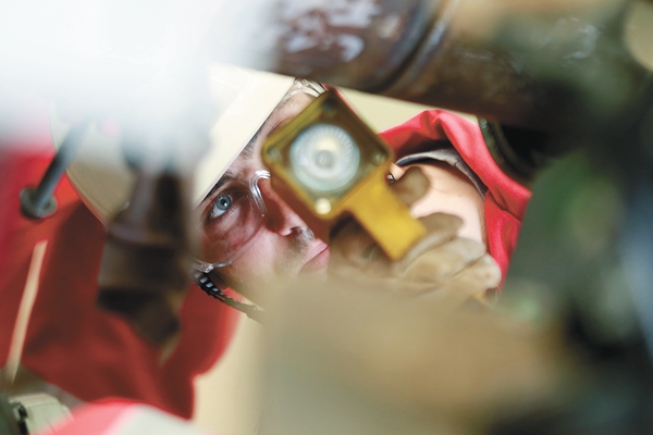 全國技術能手李志波在渤中19-6平臺上焊接銅鎳管線