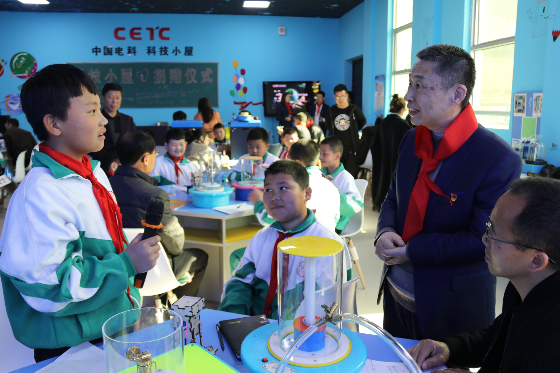 中國電科注重打造“科技+教育”扶貧樣板,在陜西綏德和四川敘永分別援建“科技小屋”試點項目,組織中國工程院院士、中國電科首席科學家陸軍赴“科技小屋”上科學課,每年組織陜西綏德、四川敘永、福建長汀三地貧困學生開展“點燃科技夢想”夏令營,幫助貧困學子學習科學知識、感受科技魅力,以實際行動踐行習近平總書記提出的“扶貧先扶志、扶貧必扶智”理念。