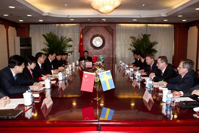 3月17日下午,國務院國資委主任王勇在委內會見了瑞典愛立信集團總裁兼首席執行官衛翰思先生一行。