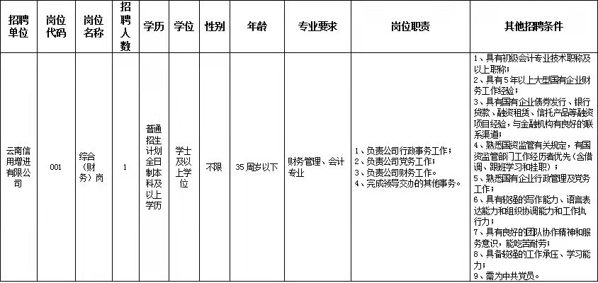 現(xiàn)面向社會(huì)公開招聘綜合(財(cái)務(wù))崗、業(yè)務(wù)崗及風(fēng)控崗各1人。