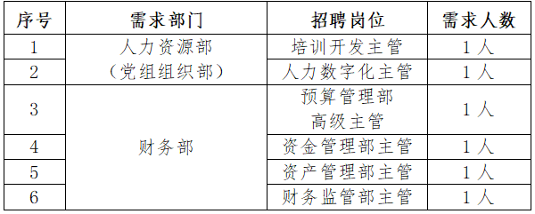 (一)人力資源部(黨組組織部) 培訓開發(fā)主管1人