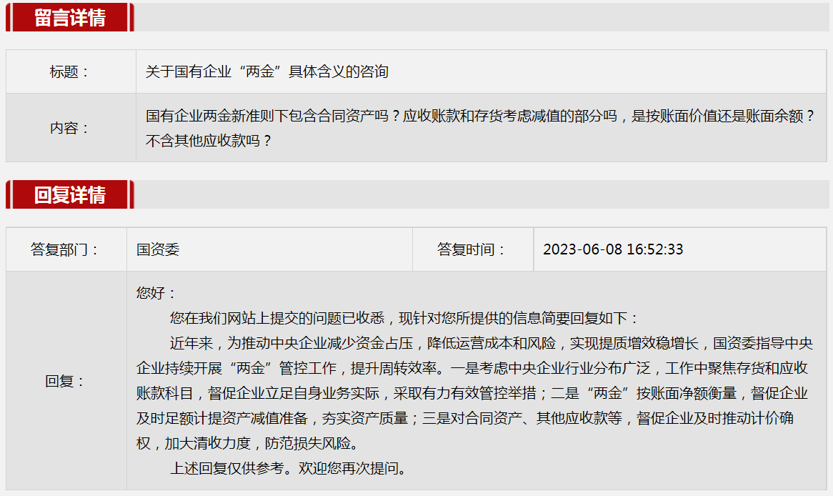 2.關于國有企業(yè)“兩金”具體含義的咨詢。