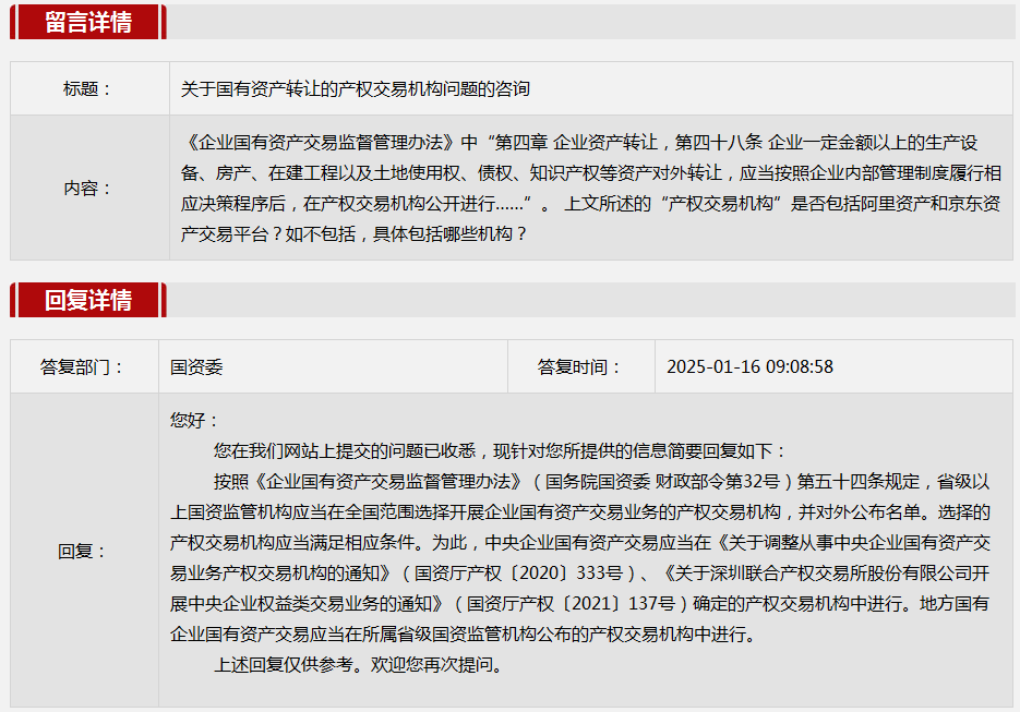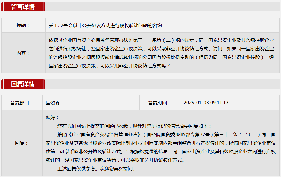 2025年1月國務院國資委網站政務咨詢欄目部分網友提出的咨詢,我們初步做出了認真的回應,現選擇五條關注度高、點擊量高的問題,再次推薦分享。