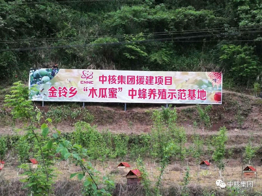為把金鈴鄉(xiāng)的良好生態(tài)優(yōu)勢轉化為經濟優(yōu)勢,在中核集團50萬元資金支持下,打造了金鈴鄉(xiāng)“中蜂+皺皮木瓜”的木瓜蜜基地。中核集團還支持105萬元,在金鈴鄉(xiāng)建設一個種蜂養(yǎng)殖基地,增強產業(yè)競爭力,拓展增收渠道。為消除蜂農的后顧之憂,在布局金鈴鄉(xiāng)中蜂生產的同時就與實體銷售企業(yè)簽訂了年度銷售協(xié)議,并組織對養(yǎng)蜂農戶開展技術培訓,提高他們的養(yǎng)蜂水平。該項目帶動167戶農戶(其中87貧困戶)增收,為金鈴鄉(xiāng)養(yǎng)蜂農戶帶來了猶如蜂蜜甜的生活。