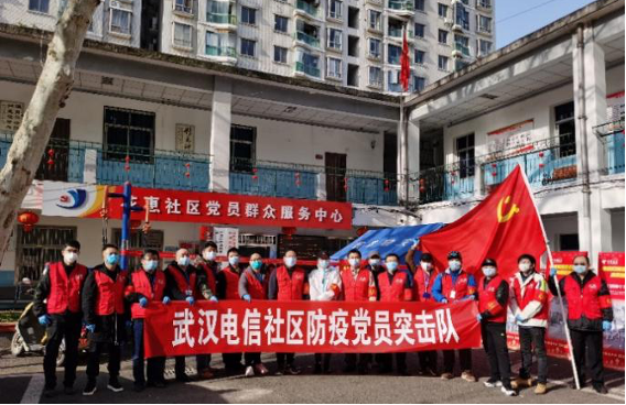 2020年3月15日, 中國電信武漢分公司派出的社區防疫黨員突擊隊來到江岸區勞動街花惠社區開展服務工作