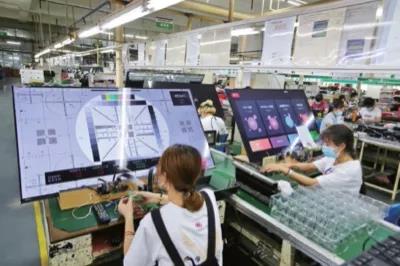 華僑城集團旗下東莞康佳整機生產廠, 檢測員在對彩電進行功能檢測調試