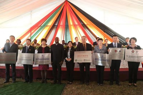 贊比亞高教部部長(zhǎng)和中國(guó)教育部職成司二級(jí)巡視員為中贊職業(yè)技術(shù)學(xué)院七家分院授牌