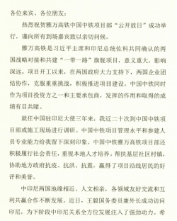 印尼駐中國大使周浩黎(Djauhari Oratmangun)表示,雅萬高鐵是印尼基礎設施發展中最突出的項目,雅萬高鐵不僅有助于印尼電氣化鐵路技術發展,還將帶動沿線就業,推動制造業、基礎設施等相關產業的發展。他希望有更多像中國中鐵這樣有實力、有擔當的中國企業參與印尼基礎設施建設,共筑兩國之間深厚的友誼。