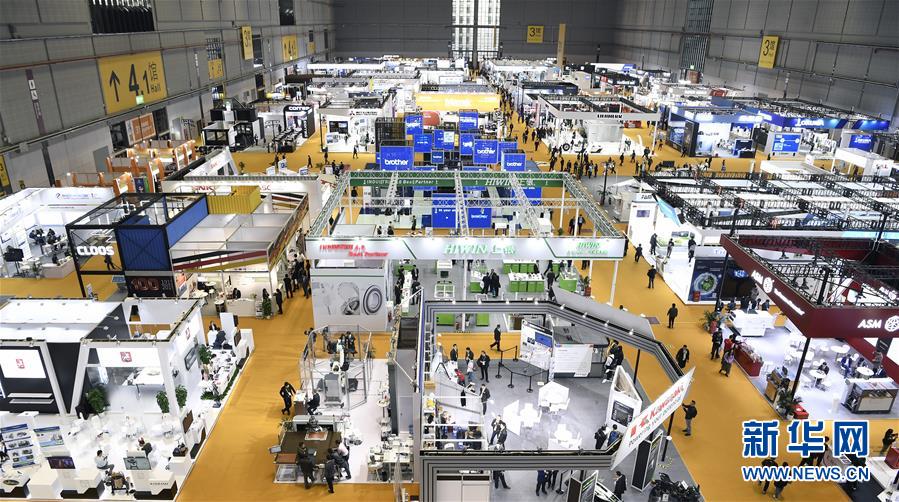 這是第二屆中國國際進口博覽會裝備展區(2019年11月8日攝)。