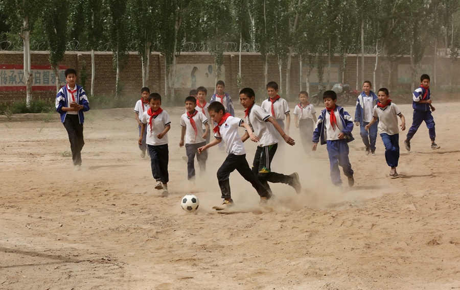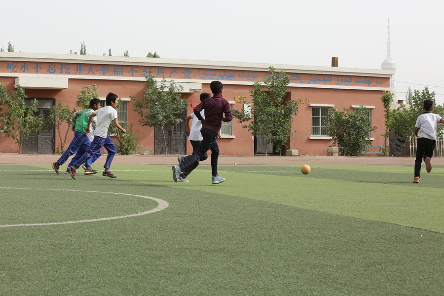 2016年以來,中遠海運聯合新疆資助教育基金會,在新疆喀什、吐魯番等地學校添置凈化飲水機、乒乓球臺、籃球架等設施。圖為凈化飲水及體育設施投入前后對比。